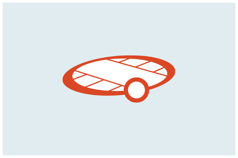Logomark design created for a smart card software named after Mars's moon Deimos. The design hinges on visual wordplay, representing a smart card's chip and the orbit of a moon.
