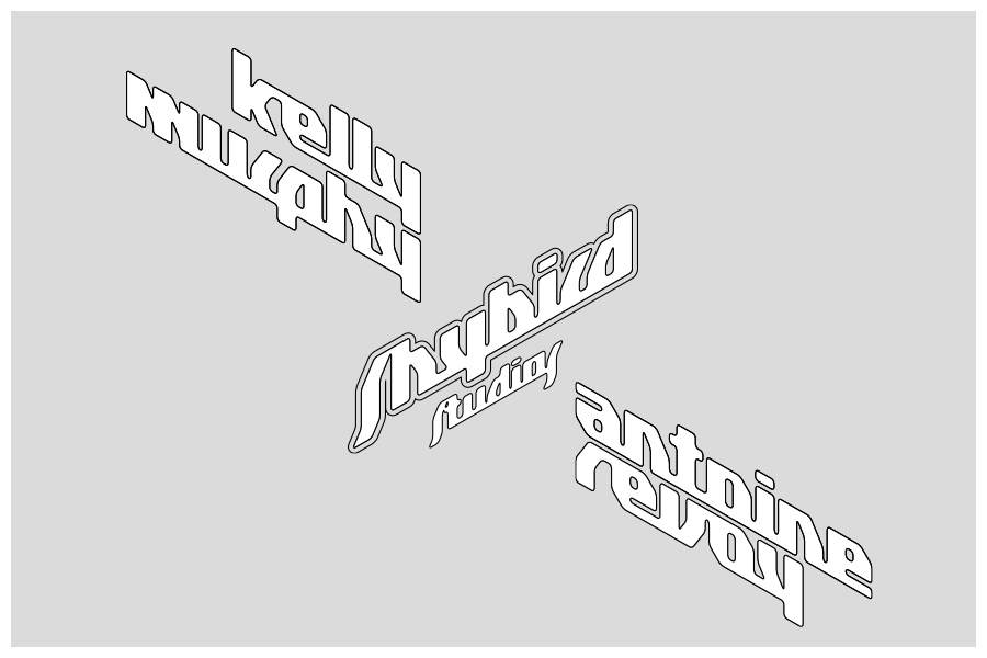 Typeface designed for collaborative work between Kelly Murphy and Antoine Revoy under the pseudonym 'Shybird' (an anagram of 'hybrids').