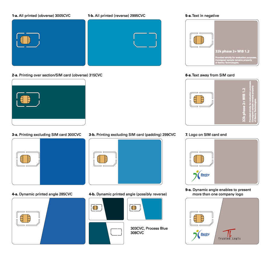 Designs created in February 2006 by Antoine Revoy for print on smart cards containing software by digital security solutions companies Bantry Technologies and Trusted Logic (respectively based in Ireland and France).
