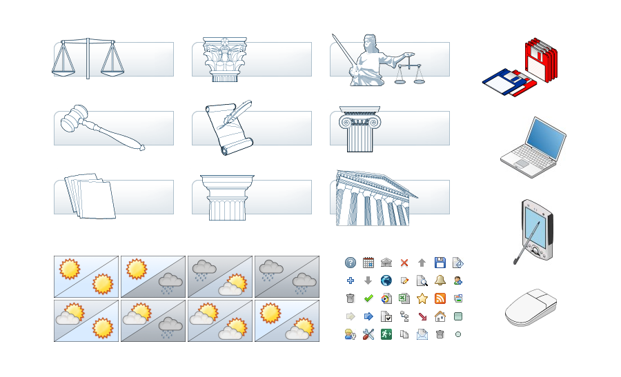 Icons created for a variety of clients and media (screen, print, applications). The smaller icons were created in addition to or as modified icons of the Tango suite.