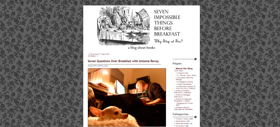 A conversation about my work and career with Julie 'Jules' Danielson, author of the children's literature blog Seven Impossible Things Before Breakfast.