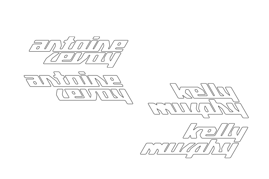 Typeface designed for collaborative work between Kelly Murphy and Antoine Revoy under the pseudonym 'Shybird' (an anagram of 'hybrids').
