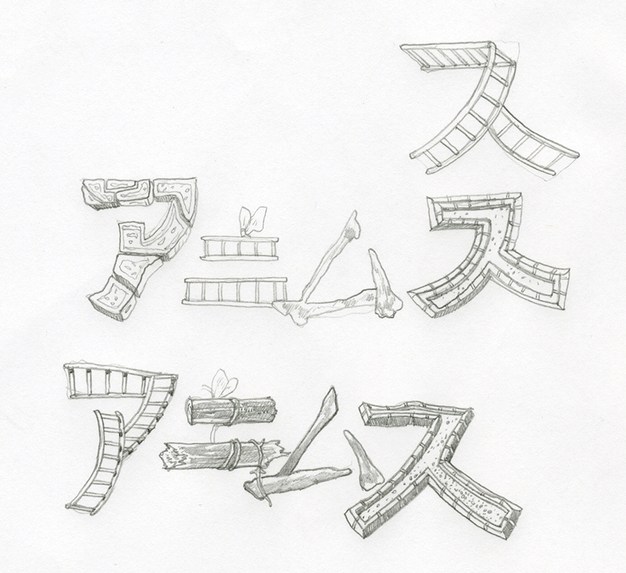 Sketches for a logotype in Japanese (katakana).