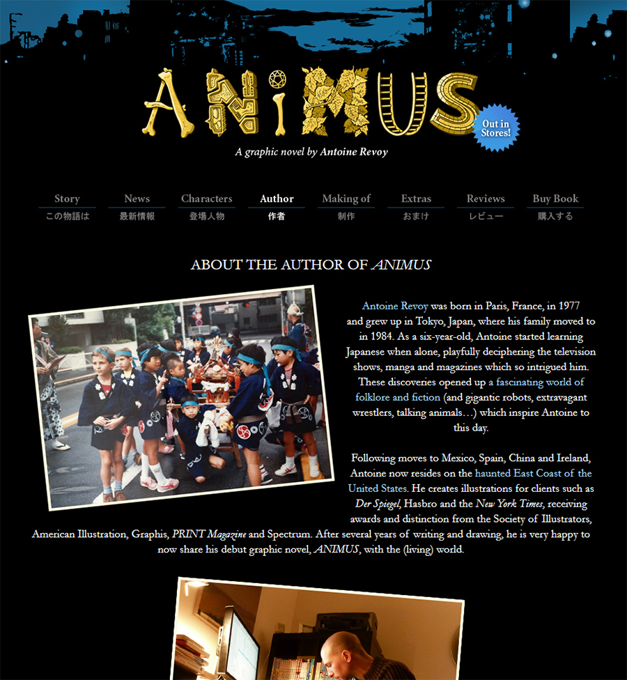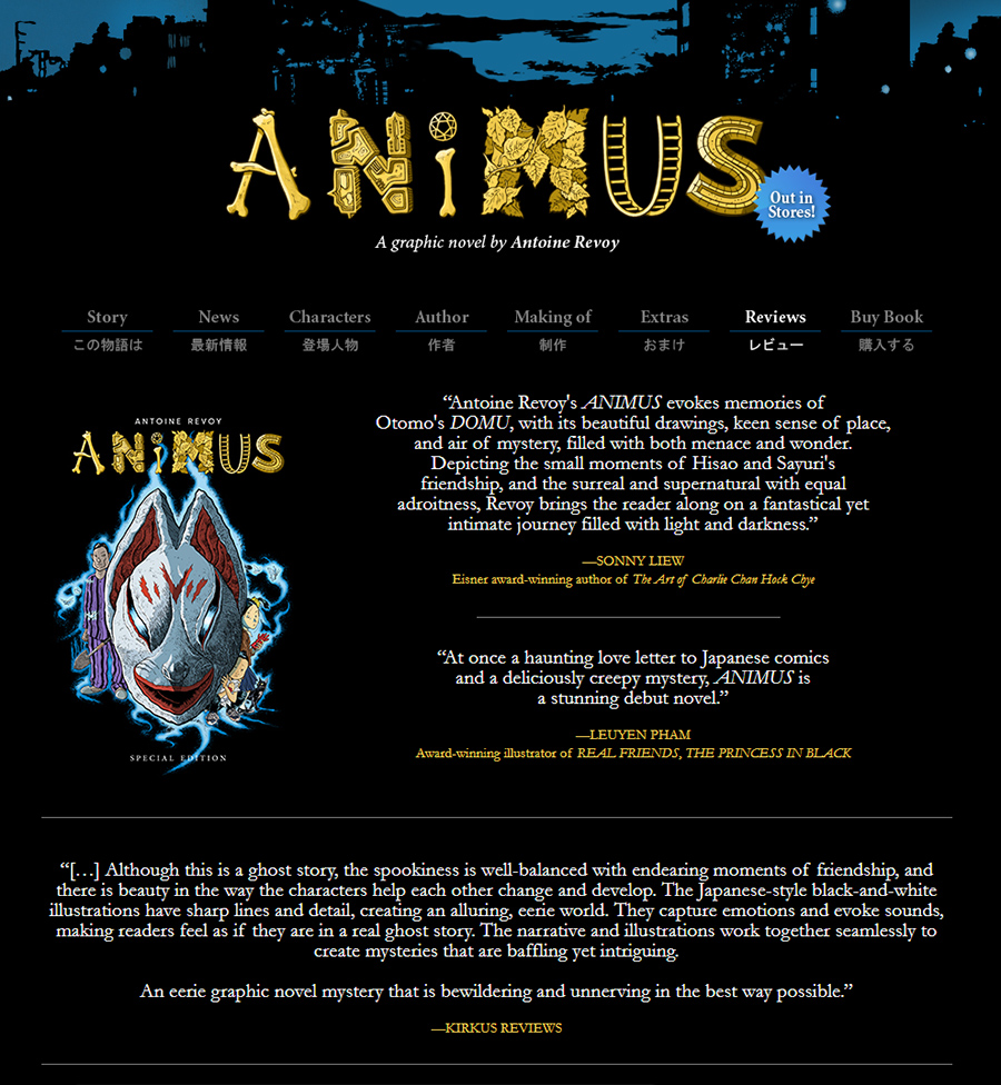 Antoine Revoy designed, coded and built the official website for his graphic novel ANIMUS, upon its original publication in English in 2018, by First Second Books, a division of Roaring Brook Press.