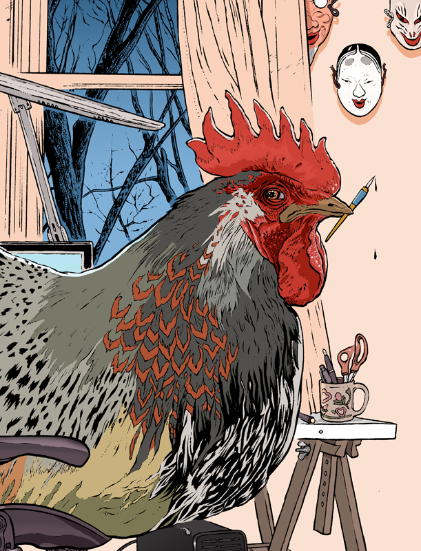 An illustration for the 2017 Chinese New Year—the Year of the Rooster. This image is simultaneously an homage to my home country's mascot (the rooster), its national colors (blue, white, red), a self-portrait in the tradition of Norman Rockwell's triple self-portrait, and a friendly nod to one of my favorite picture books when growing up, Need A House? Call Ms. Mouse! written by George Mendoza and illustrated by the amazing Doris Susan Smith.